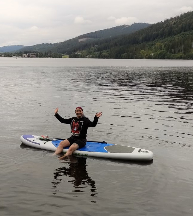 Die ersten drei Tage unseres Besuchs waren bedauerlicherweise eher bewölkt und kühl. Doch nichtsdestotrotz habe ich gleich nach dem Aufbau unseres Lagers -bei wohligen 16 °C – den See mit meinem SUP erobert.